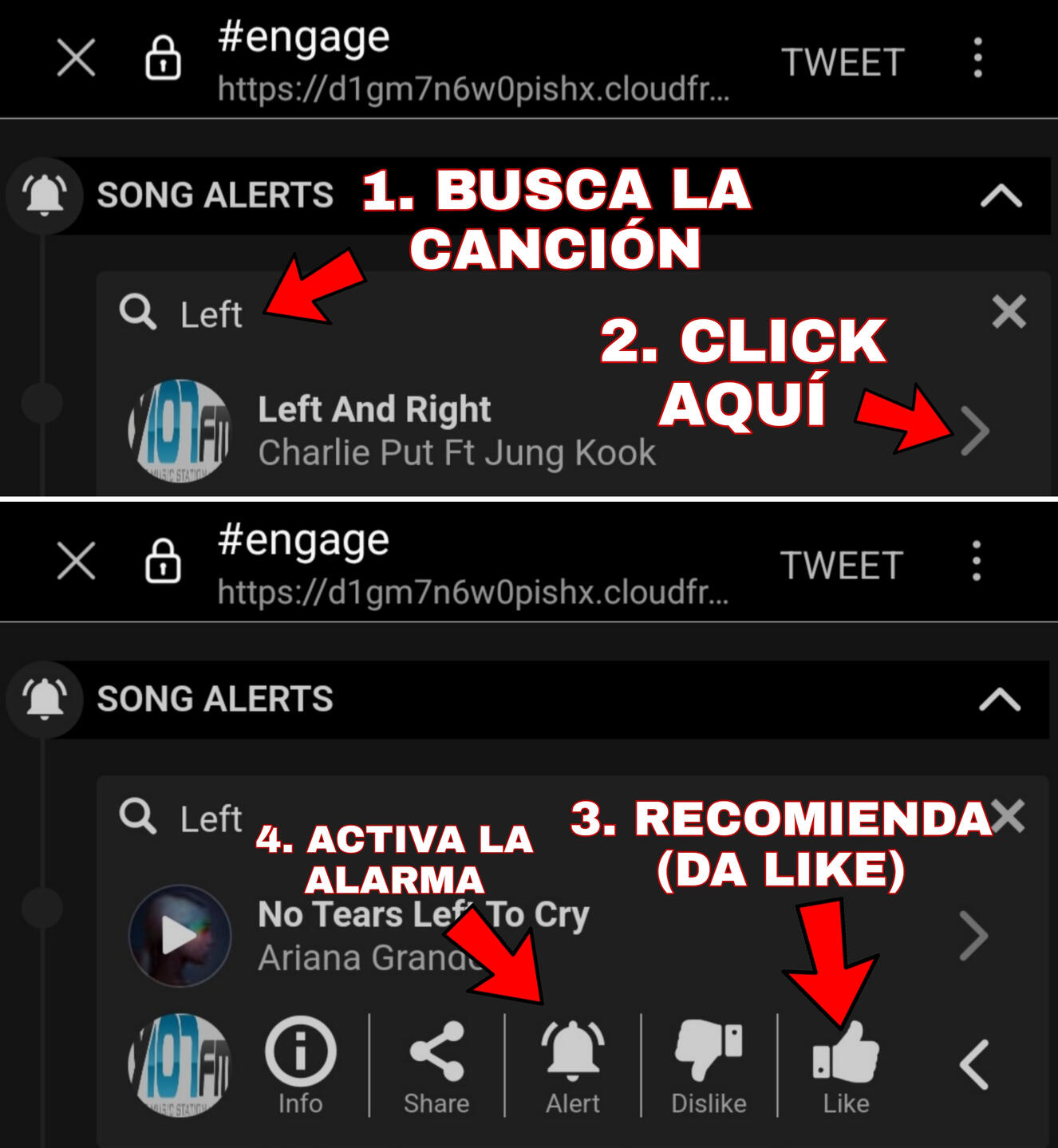 3) Si al ingresar de nuevo a una página, te siguen apareciendo las alarmas, no es impedimento para que recomiendes/busques la canción otra vez y le des LIKE.